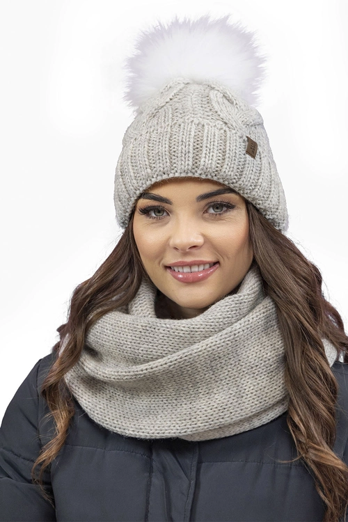 Vivisence Damen Bommelmütze Und Loop-Schal Mit Bommel Ideal Für Wintertage 7014, beige Melange