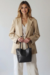 Vivisence Handtasche Damen Kunstleder Set 3 Teilig Elegante Taschen, Schwarz