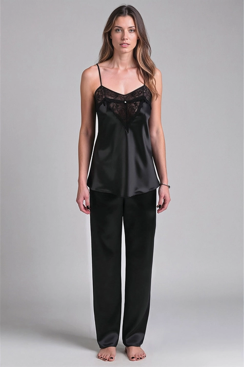 Vivisence Schlafanzug Set Satin Verstellbare Träger Bequem Ideal Für Nachtwäsche 2035, schwarz