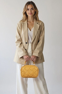 Vivisence Damen Schultertasche Geflochtenes Design Ideal für den Alltag, Gelb