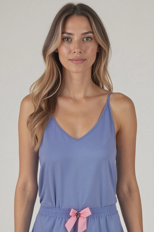 Vivisence Damen Pyjama Oberteil Viskose mit Trägern Perfekt Für Nacht 2200, himmelblau