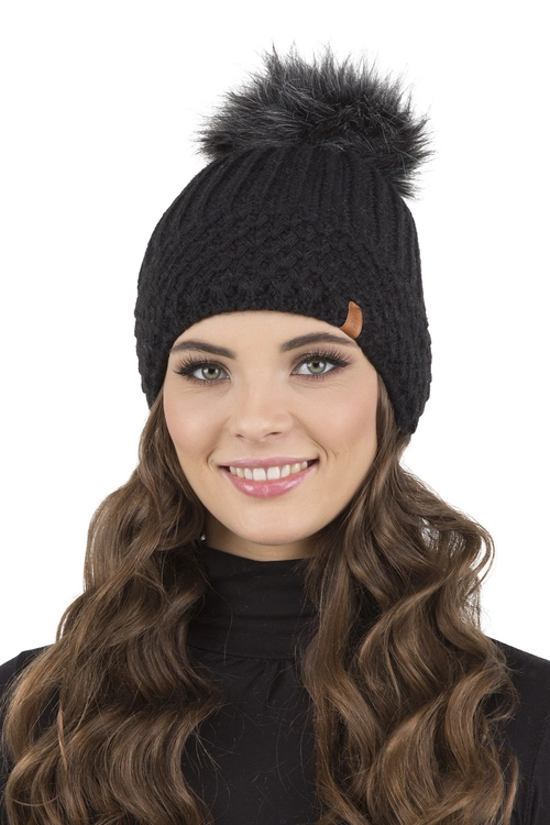 Vivisence Wintermütze mit Bommel Damen Warmes Ideal Für Kalte Wintertage 7016, schwarz