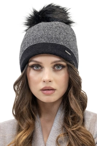 Vivisence Damen Bommelmütze Winter Bommel Strickmütze Subtilem Pepitamuster 7095, graues Pepitamuster
