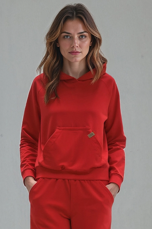 Vivisence Women Hoodie Sweatshirt Cotton Hood Pocket Casual Sportswear 9003, red