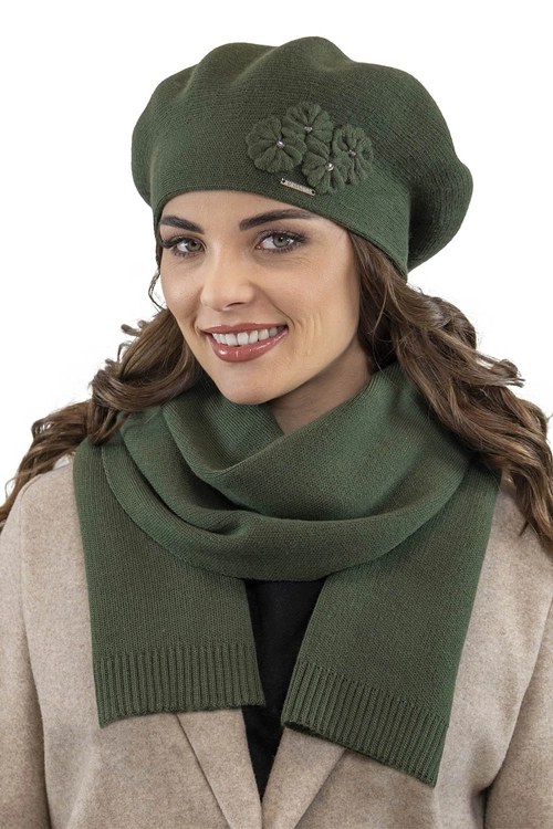 Vivisence Women's Beret With Floral Applique Ideal For Winter Days 7036, dark grey