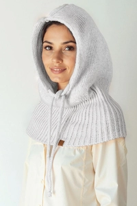 Vivisence Women Winter Hood Merino Wool Knitted Drawstring Fit Cozy Warmth, Grey