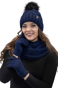 Vivisence Women Winter Hat Scarf And Gloves Set Soft Fleece Lining Cozy Warmth, dark blue