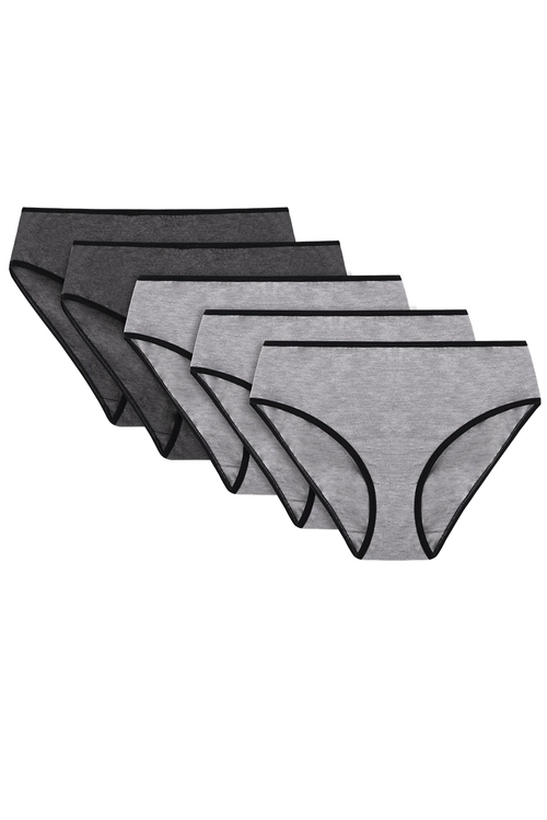 Vivisence Woman Briefs Cotton Midi Bikini Smooth Underwear 4016 5-Pack, black elastic: grey/grey/grey/graphite/graphite