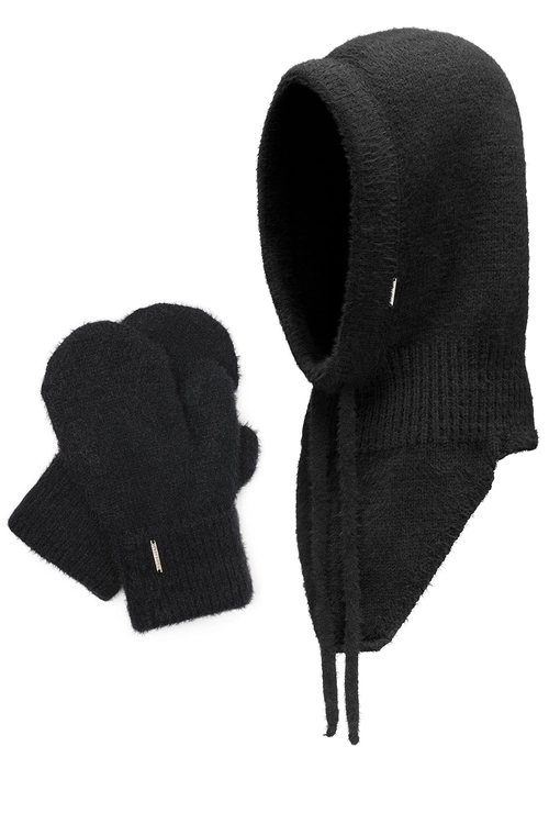 Women's Hood And Gloves for Winter and Autumn Set Stylish Balaclava Warm And Functional For Cold Weather Comfort With Soft Yarn And Elegant Tinsel Detail 7097Kmpl, black