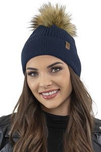 Vivisence Women's Winter Hat With Pom Pom Autumn Style Warm Yarn 7042, dark blue