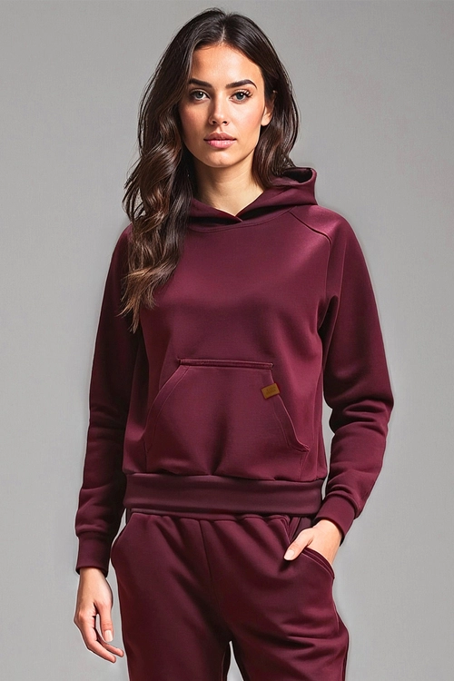 Vivisence Women Hoodie Sweatshirt Cotton Hood Pocket Casual Sportswear 9003, maroon