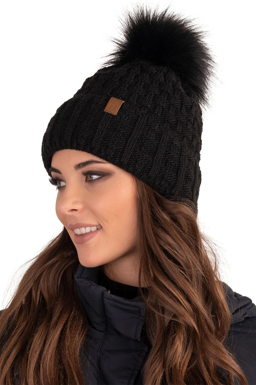 Vivisence Bonnet Femme Avec Pompon Doublé En Polaire Tricoté Pour L’Hiver 7015, noir