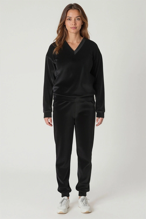 Vivisence Ensemble Survêtement Femme Coton Avec Poches Parfait Confort Quotidien 9202, noir